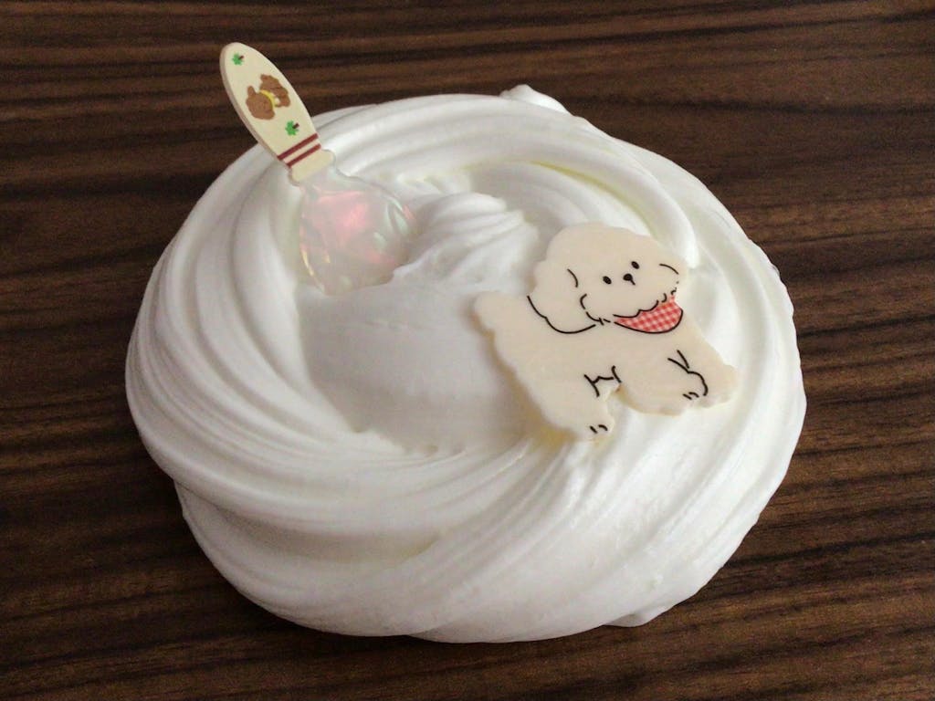 This slime is a soft, fluffy, slay with a smooth, coated feel.